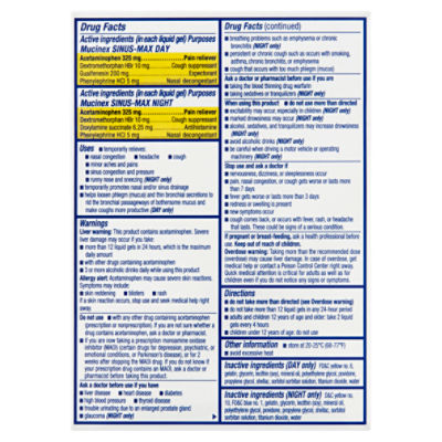 Mucinex Sinus Max Maximum Strength Day Night Ages 12 Liquid Gels